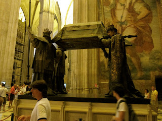 We then walked to the adjacent Santa Maria Church which is the 3rd biggest in all of Christendom, after St. Peters in Rome and St. Pauls in London. Don’t you just love how they compare church sizes? My spire is bigger than your spire. Talking about spire envy, the square bell tower shown in the picture is identical to the one we saw in Marrakech, done by the same Muslim architect. Of course, he didn’t design it as a bell tower, by as a Minaret, when the Christians ripped down the mosque that was there, after they expelled the Muslims, they left the Minaret and added a one-floor extension for the bells.